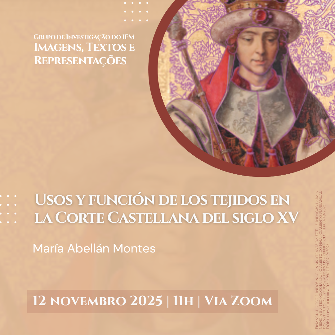 This session will feature a presentation by Visiting Fellow María Abellán Montes, entitled Usos y función de los tejidos en la Corte Castellana del siglo XV.