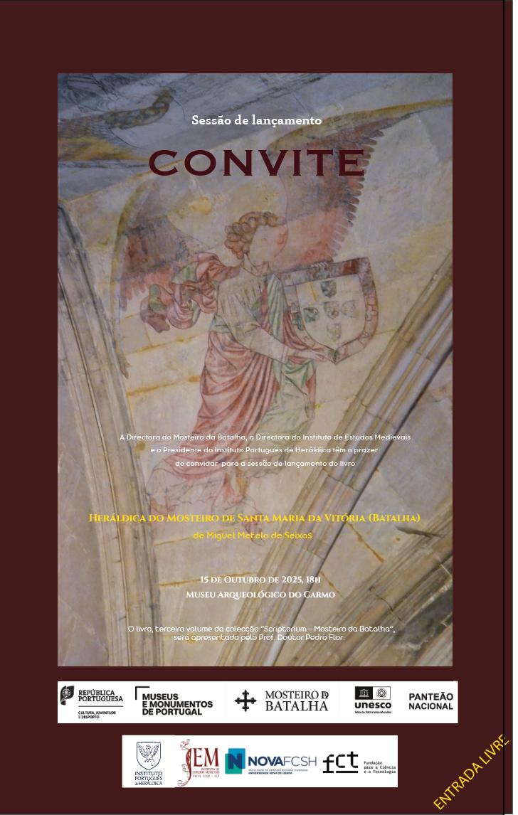 No dia 15 de Outubro, pelas 18:00, terá lugar no Museu Arqueológico do Carmo, em Lisboa, sede do Instituto Português de Heráldica, a sessão de lançamento do livro Heráldica do Mosteiro de Santa Maria da Vitória (Batalha), da autoria de Miguel Metelo de Seixas.
